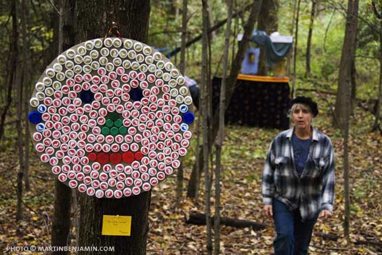 Annette Nanes: The Encapsulated Man (bottlecaps on cardboard)